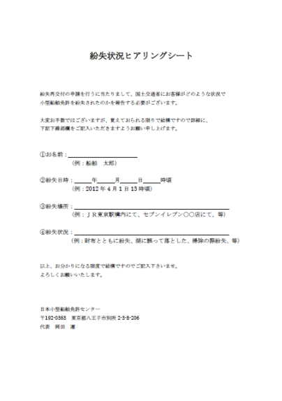 ⇒紛失状況ヒアリングシートダウンロード(PDFファイル)